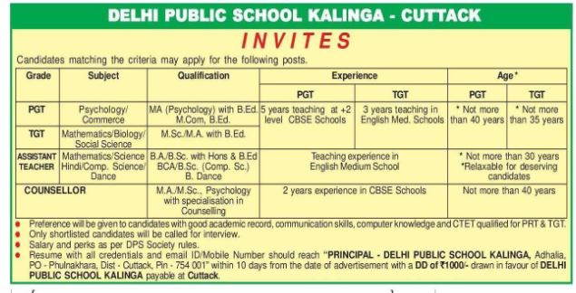 DPS-Kalinga Vacancy,pgt TGT jobs Cuttack, teaching jobs in Odisha, DPS-Kalinga recruitment 2025, counselor jobs in Cuttack, apply for DPS-Kalinga, teaching careers in Odisha, DPS-Kalinga application process.